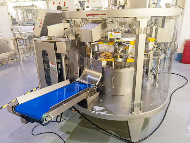 腌漬肉滑自動包裝機(jī)是通過U型料箱進(jìn)行均勻攪拌,使其肉料更加的均勻,核心部分采用的是PLC可編程控制,它能夠?qū)崟r采集物料信息的重量,并通過軟件傳輸給顯示屏幕,讓用戶更加清晰了解生產(chǎn)過程,當(dāng)信息設(shè)定達(dá)到與預(yù)設(shè)重量信息一致時,料箱停至供料,給袋機(jī)將旋轉(zhuǎn)至封口處,通過恒溫加熱的方式,快速完成封口條件,在冷卻后快速定型,然后由腌漬肉滑自動包裝機(jī)的輸送帶送出,完成全部的生產(chǎn)過程。