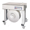 該打包機(jī)工作原理:打包物體基本處理機(jī)器中間,首先右頂體上升,壓緊帶的前端,把帶子收緊捆在物體上,隨后左頂體上升,壓緊下層帶子的適當(dāng)位置,加熱片伸進(jìn)兩帶子中間,中頂?shù)渡仙?,切斷帶子,較后把下一下捆扎帶子送到位,完成一個(gè)工作循環(huán)。