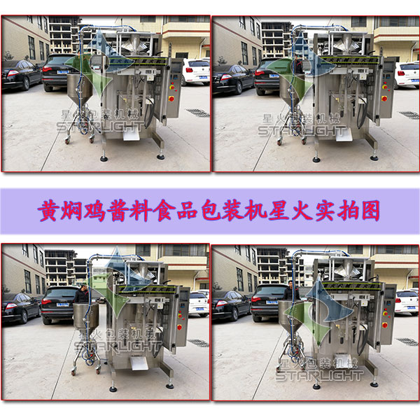 而我們星火的黃燜雞醬料食品包裝機就是您較好的選擇,來吧,我們在這里等你,星火可以滿足你的一切要求,我們的全自動黃燜雞醬料食品包裝機也可以滿足你對包裝機械的一切要求!