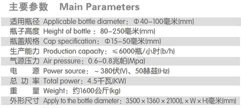 適用于不同規(guī)格玻璃瓶及塑料瓶的外蓋(含螺紋蓋)自動旋合,該機技術先進、性能可靠、產(chǎn)能高。