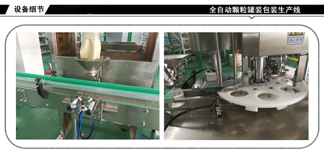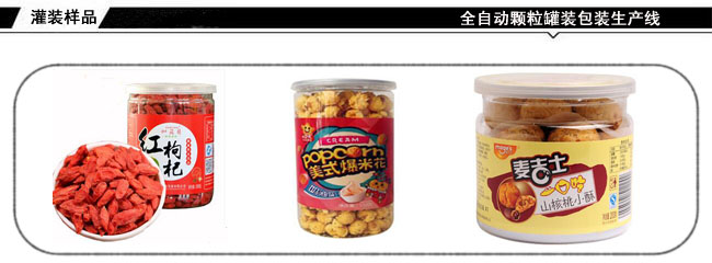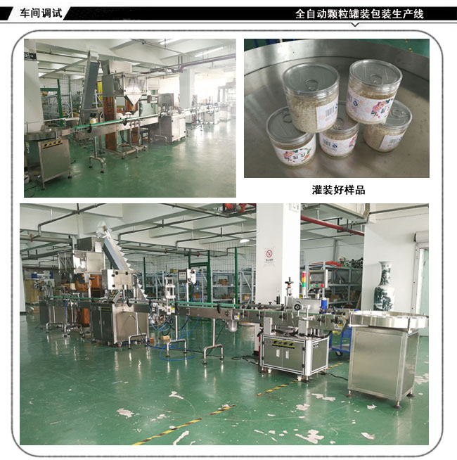 全自動(dòng)顆粒罐裝包裝生產(chǎn)線-堅(jiān)果灌裝封口貼標(biāo)生產(chǎn)線根據(jù)不同用戶的瓶裝,聽裝,桶裝,標(biāo)準(zhǔn)瓶,異形瓶及實(shí)際產(chǎn)品特性和用戶要求實(shí)現(xiàn)自動(dòng)化;該設(shè)備能夠?qū)崿F(xiàn)人工上瓶、備料后,自動(dòng)理瓶、稱重、灌裝、旋蓋、封口、貼標(biāo)、收罐等全過程的自動(dòng)運(yùn)行。減少勞動(dòng)力,節(jié)約成品,實(shí)現(xiàn)無人化包裝生產(chǎn)