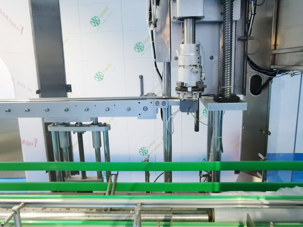 大型旋蓋機械是一款高度自動化的機械設(shè)備,它可以根據(jù)自身的機械性能與灌裝機、輸送機、貼標(biāo)機等形成聯(lián)動生產(chǎn)線,塑料桶自動旋蓋機的工作方式非常的智能,它通過傳送帶系統(tǒng)帶有商品的塑料桶抵達旋蓋工位后,以定位器將塑料桶固定在旋蓋位置,此時,塑料桶自動旋蓋機的旋蓋頭開始下降并抓緊蓋子,然后按照工作人員設(shè)定的扭矩值旋轉(zhuǎn)至指定的緊固程度,在整個生產(chǎn)過程當(dāng)中,大型旋蓋機械會根據(jù)實際情況自動調(diào)整生產(chǎn)速度和力度以確保極佳的生產(chǎn)效果。